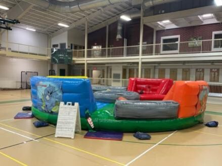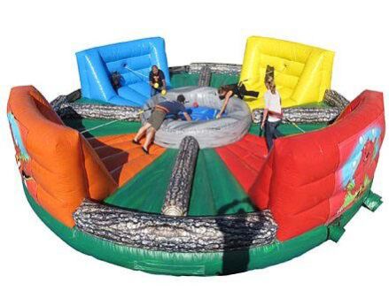 Modeled after the classic hippo feeding board game, this LIFE-SIZED version puts you in the game – get ready to Chow Down in this 4-player bungee tug-o-war style game that involves speed, strength and agility!