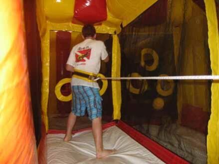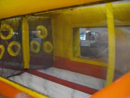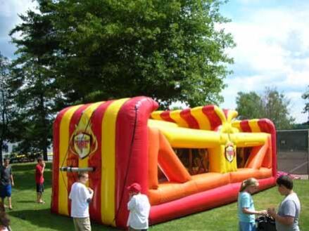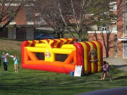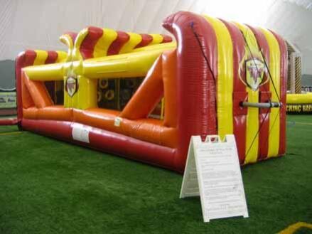 The object of the Rapid Fire: Teams of two (with teammates kitty-corner from each other - facing their opponent) start with 4 balls per lanel. When the referee blows their whistle, each player is a in a mad dash to pass their balls through the holes in the netting separating their opponent across from them. AT the conclusion, the team with the least amount of balls in their section wins. The Rapid Fire will be a hit at your next event!