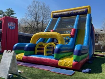 A brand new wacky version of an Obstacle Course and Slide that is sure to test your endurance. Battle your opponent through the entrance tubes, bash your way through inflated pillars and climb over 20 mounds until you get to the top platform where you finally hit the slide and ride down. What will your best time be?