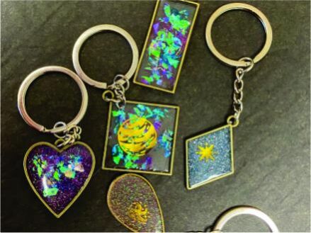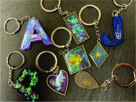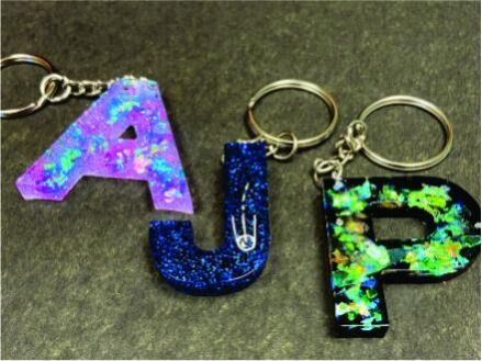 Need cooler keys? Create a funky keychain with resin. Our UV resin program produces custom accessories in minutes. Choose between a bold glittery monogram or a delicate geometric frame and make it your own!