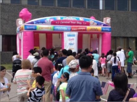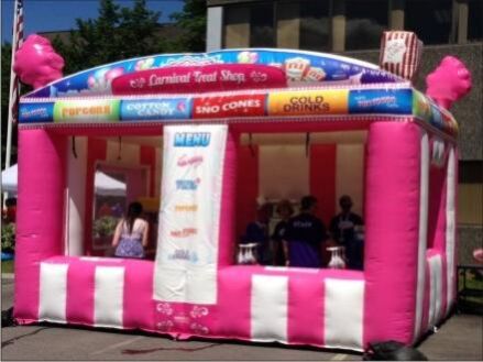 This colorful digitally printed Fun Food booth will attract lots of attention.This is an inflatable replica of a classic food concession stand. It is full of space to set-up a variety of Fun Foods! The inflatable treat shop has four windows that can be used to serve from. Removable Velcro panels allow you to customize the menu board for specific company and menu information. Ask about our Fun Food packages with Popcorn, Snow Cones, Cotton Candy, Italian Ice, Fried Dough and more.