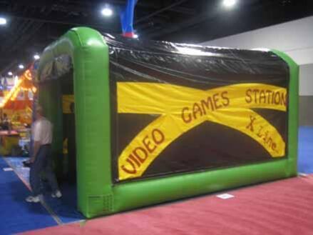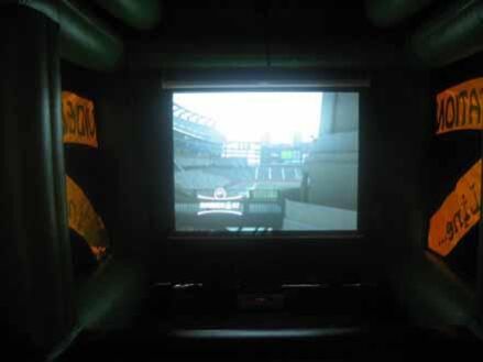 Enter into our new game station. The station features surround sound, a giant screen, games seats, racing consoles and some of the best gaming around. The station even has blackout flaps to make it easy to have it at even your outdoor events.