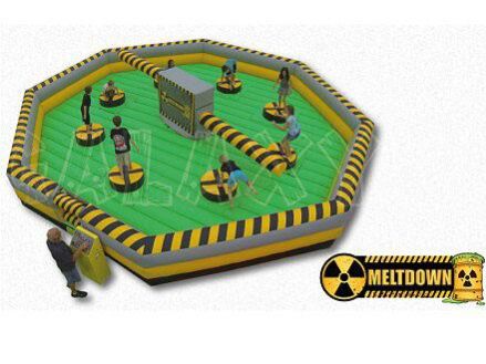 Meltdown is our 8 player action game, which challenges your stamina, agility and reactions. Not one but two spinning boom arms try to knock you off your podium. You have to duck underneath or jump over the foam boom. Who will be the last one standing?