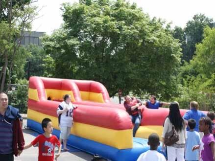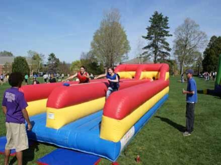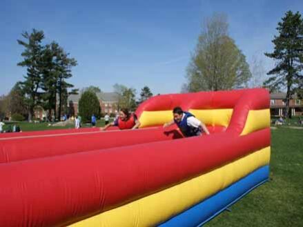 The object to the Bungee Run is to race your opponent to the end of the inflatable while attached to a Bungee cord. Challenge your friends to compete in the Bungee Run to see who can get the furthest. The Bungee Run is fun to watch and play and will be a hit at your next event!
