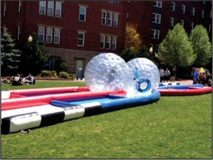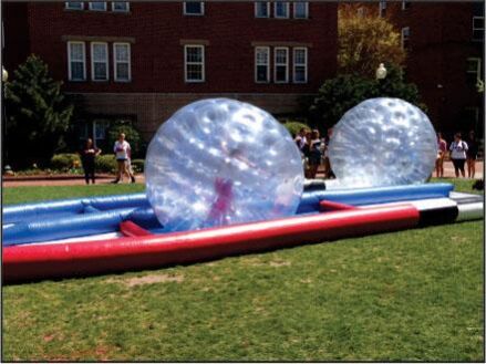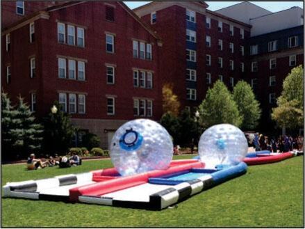 Ready for an awesome racing game? Two participants each climb into their Double walled inflatable Zorbie Spheres. Its like being in a human hamster ball. The participants race each other over varied track obstacles and attempt to cross paths in the centers of the track before reaching the end. Once you reach the end it isn over. The participants reverse course and race back to the starting gate.