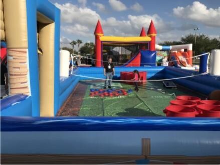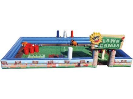 The Lawn Games Arena is the most versatile, brag-worthy inflatable combines 10 games in one unbeatable rental piece that’s sure to entertain for hours. We carefully selected the most popular field games from our product line to feature in this must-have attraction. The Arena is guaranteed to thrill and delight customers of any age–whether it’s elementary school students or corporate clients.