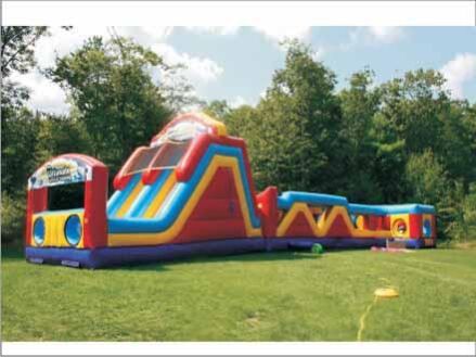 The UMC Obstacle Course brings everything you love in an inflatable attraction together in one brilliant design! Complete with Rock Walls and Slides and the ability to be setup in a variety of configurations!