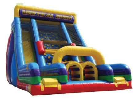 A brand new wacky version of an Obstacle Course and Slide that is sure to test your endurance. Battle your opponent through the entrance tubes, bash your way through inflated pillars and climb over 20 mounds until you get to the top platform where you finally hit the slide and ride down. What will your best time be?