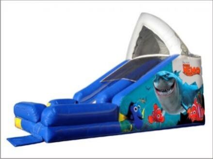 Our Finding Nemo Slide is sure to attract fans young and old alike. The fun, fin-like design on top of the wet or dry slide invites kids and students to play with Marlin, race with Dory, or even climb through the mouth of a whale. The slide leads into a cool pool attached to the bottom, making this inflatable water slide a summer favorite, and with the colorful characters of Marlin, Nemo, and Dory, this wet/dry slide is sure to make your event a swimming success!
