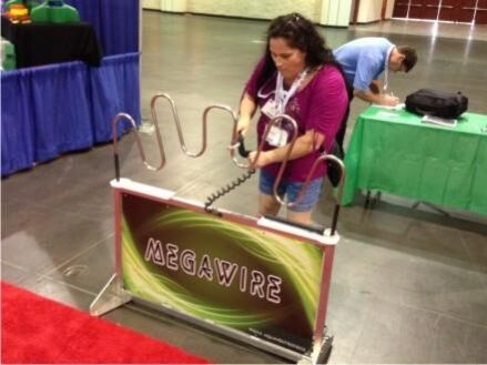 Megawire is the ultimate test of patience, whole body steadiness, and hand-eye co-ordination. Watch while players attempt to navigate the handheld ring through 12 linear feet of tube on this massive 4 feet tall by 4 feet wide game. Should they loose their concentration and make a mistake, the red light will turn on along with an audible buzzer.